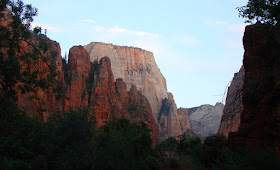 The sun was dropping below the horizon and the shadows in the canyon deepened. It used to be that the road end at Temple of Sinawava was one of the busiest parking lots in Zion, but with only a few dozen slots, cars would circle for a long time waiting for something to open up. It was crowded and noisy. The park service eventually instituted a shuttle bus system and no longer allows cars in the upper canyon, at least during the summer. Having experienced the canyon both ways, I can say that the shuttle system has done wonderful things for the canyon. The shuttle stops at road's end, people pile out and immediately disappear. By the time the bus leaves, the canyon is quiet again. More and more animals can be seen, and the canyon feels wilder, even though the number of visitors each year has been fairly constant.