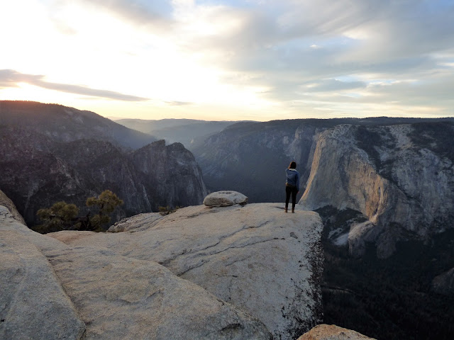 Just beyond the fissures, the world ends...the cliff edge is the beginning of a sheer 3,000 foot drop to the valley floor below. The perspective is both stunning and dizzying. It's hard to believe, but the viewpoint makes El Capitan look almost...small. It's scattered in with so many other steep cliffs.
