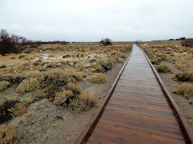 The rain was still falling when we arrived at the refuge during our recent Bombogenesis trip to the Death Valley region. It had indeed been falling all night, so I should have known what was going to befall us when we tried to drive the gravel-clay road to Devil's Hole to see the most restricted vertebrate habitat on the planet. The vans very nearly got stuck in the slick mud, and we only made it out by getting out and pushing the van back onto semi-solid ground. We didn't make it, in other words. But we have in the past, and I'm providing a few pictures of the event.
